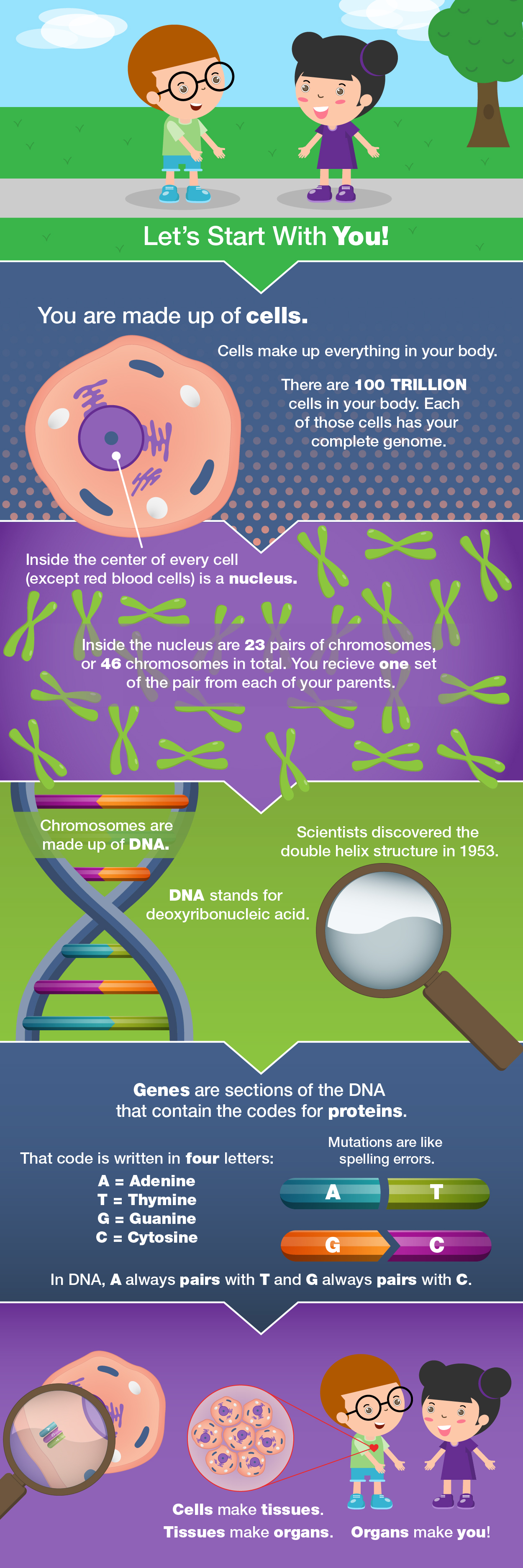 This DNA infographic for children was created for Cincinnati Children's Hospital to help the children better understand the concept of DNA. I created the graphics in Adobe Illustrator and compiled them in Illustrator to create the full infographic which can be viewed by clicking the link below. I really enjoyed this project and creating all the different pieces to help tell the story of DNA. I hope you enjoy it as much as I do. Take a look at the DNA infographic to see the full image.